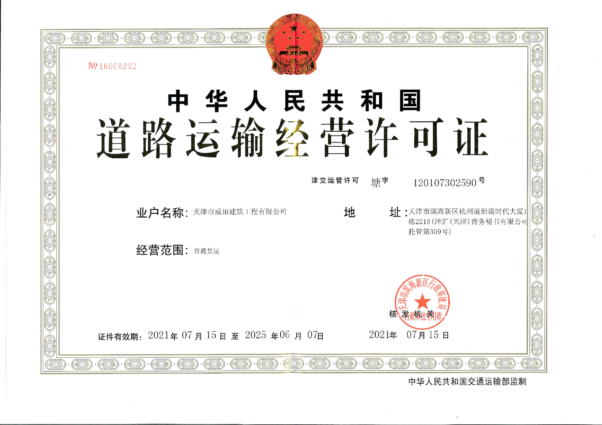 天津市威田建筑工程有限公司備案信息