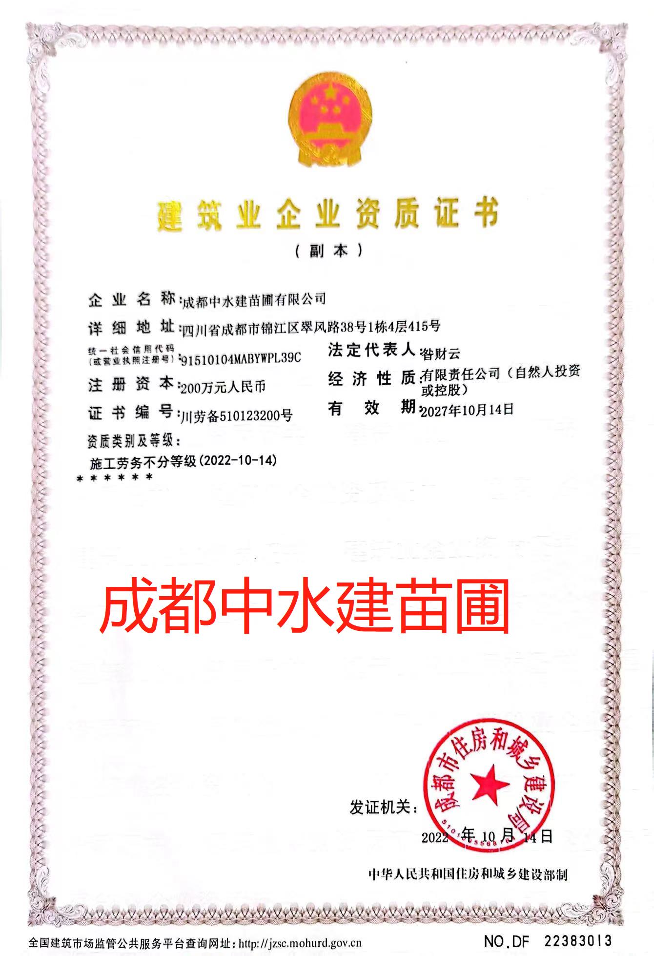 住建部成都中水建安保建設有限公司資質查詢